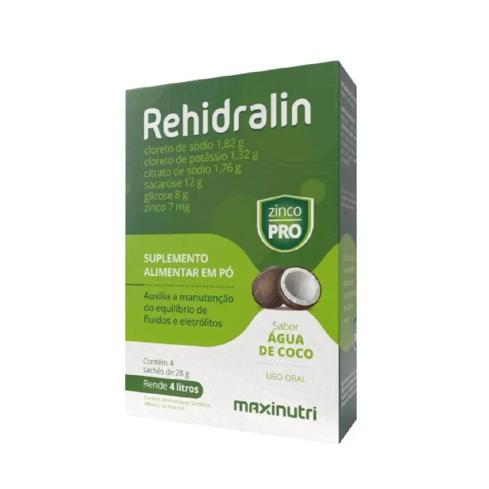 Reidratante Rehidralin 4 Envelopes De 28g Sabor Água De Coco