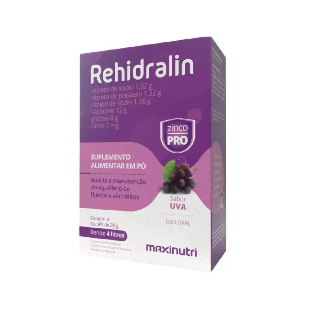 Reidratante Rehidralin 4 Envelopes De 28g Sabor Uva