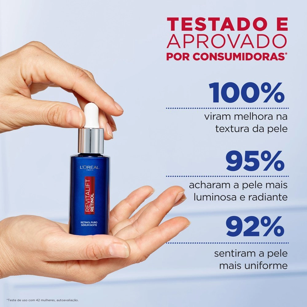 O novo Revitalift Retinol Noite Antirrugas de L’Oréal Paris é um sérum facial noturno com o ativo dermatológico mais eficaz no tratamento antissinais/anti-idade em sua forma pura, o Retinol. O Sérum Revitalift Retinol reduz em 36% as rugas visíveis e “devolve” 62% da firmeza da pele em 56 dias. Inovação criada por L’Oréal Paris e validada por dermatologistas.